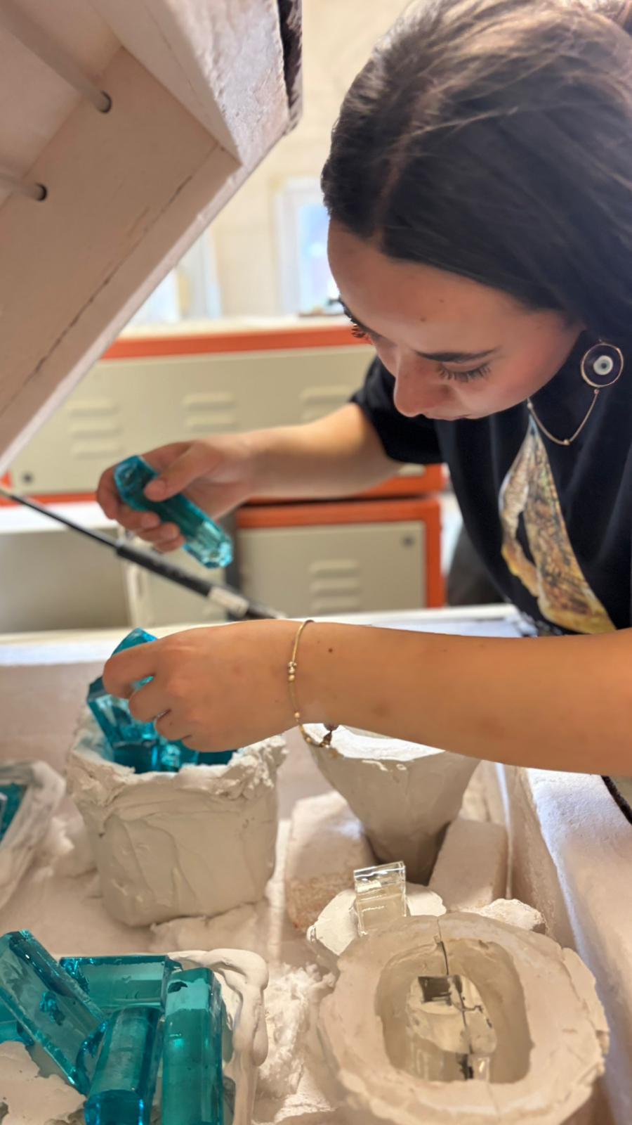 Malzemeyi adım adım tanıyarak yaratıcılığınızı açığa çıkarabilmeniz için aşağıda detayları bulunan hem eğlenceli hem öğretici bir program hazırladık. Peki nereden başlayacağız? Bu atölye çalışmasında öncelikle sıcak cam stüdyosunu tanıyacağız. Daha sonra; güvenlik kuralları, pipo ve noble(ponti) nasıl tutulur, atölye hareketleri ve egzersizleri, cam fırınından cam nasıl alınmalı, alınan camın marver masasında şekillendirilmesi, kepçe kullanımı, boyun kesme, boğma makası ve cımbız kullanımı, kütle form egzersizleri, dolu cam ile yuvarlak kütle yapımı, dolu cam ile yuvarlak 2 ve 3 boğumlu kütle yapımı, içinde renk barındıran kağıt ağırlığı yapımı (çiçek ve twist). Bu aşamaya kadar edineceğimiz bilgi ve beceri ile cam üflemeye geçeceğiz. Cama olan hakimiyetimizi biraz geliştirdikten sonra bir küre üfleyerek çalışmalarımızı sonlandırıyoruz.